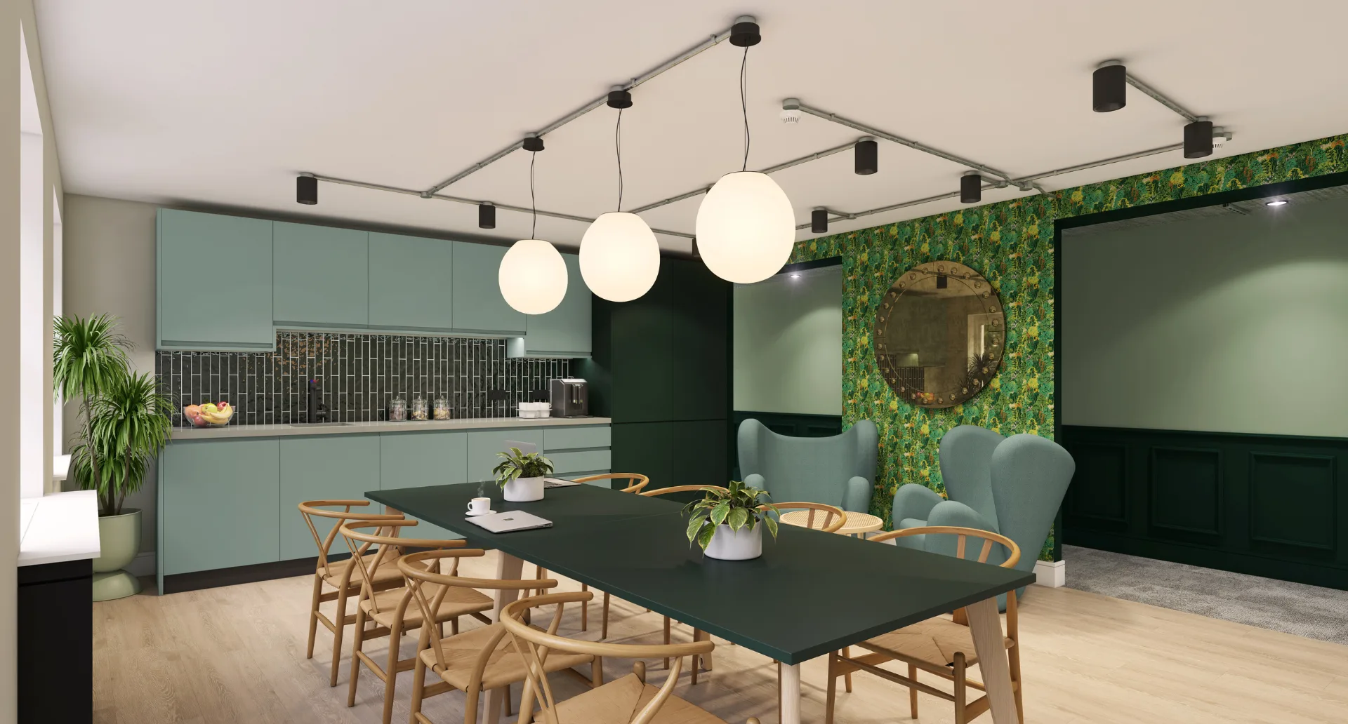• Teams need to share office amenities, including kitchens, restrooms and meeting rooms with other teams working there.